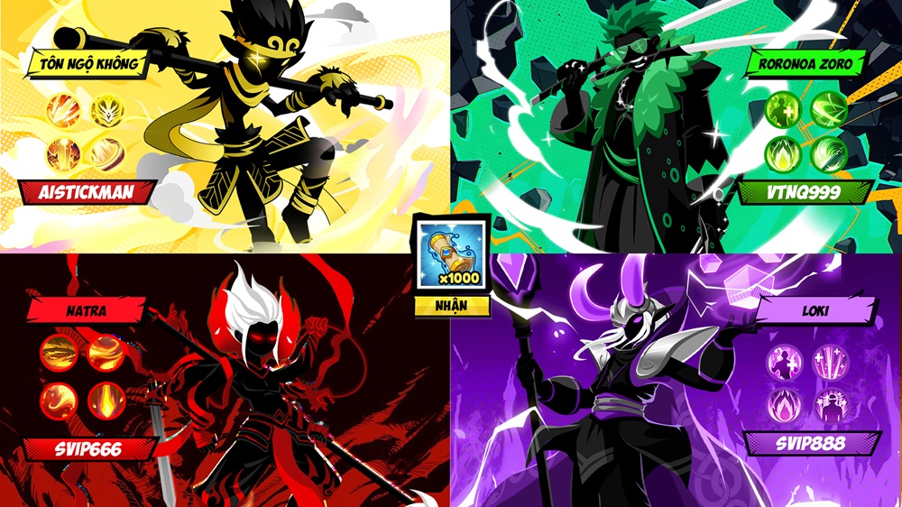 AI Stickman – Vũ Trụ Người Que mang đến trải nghiệm đầy bất ngờ khi những nhân vật quen thuộc từ nhiều vũ trụ khác nhau – từ anime, comic cho đến game MOBA – được tái hiện trong hình hài người que tối giản nhưng đầy cá tính. Sự kết hợp giữa thiết kế tinh gọn và dấu ấn riêng biệt ở kỹ năng, hiệu ứng chiến đấu giúp mỗi nhân vật vừa gợi nhớ bản gốc, vừa mang đến cảm giác mới mẻ, khiến người chơi luôn háo hức mở khóa và sưu tầm.